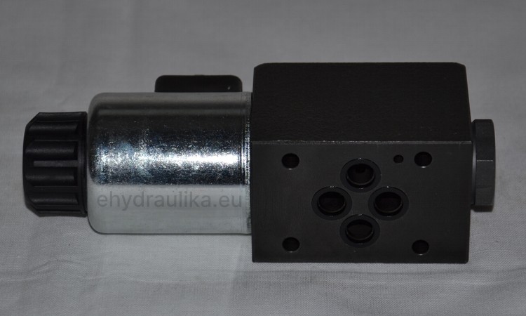 Jednocívkový 4/2 hydraulický rozvaděč, elektricky ovládaný, světlost DN06, zástavba CETOP3. Napětí na cívkach 24VDC. Konektory nejsou v ceně ventilu.