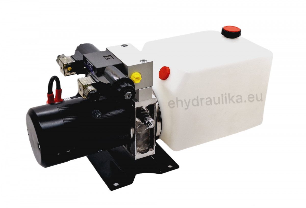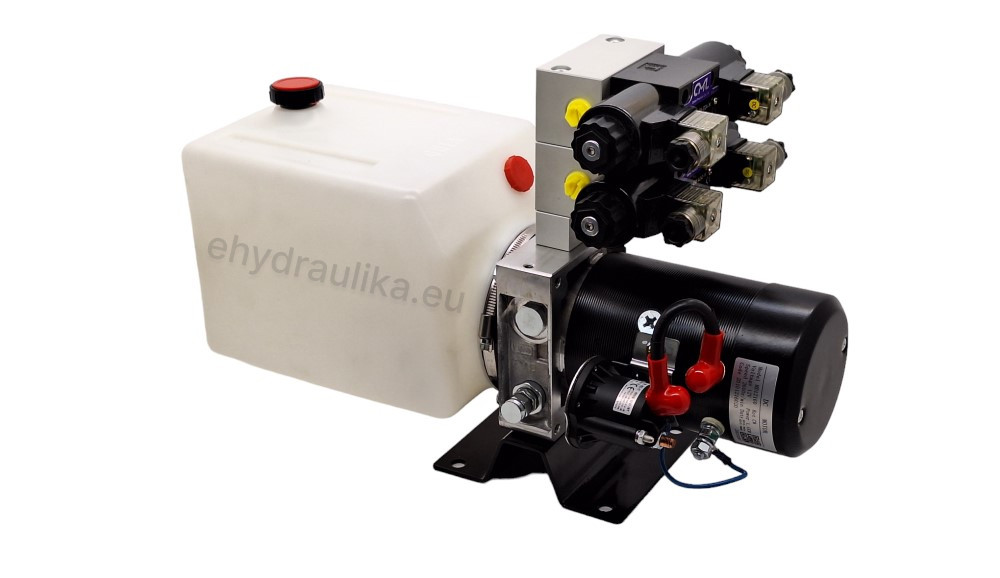 Kompletní hydraulický zdroj, čerpadlo 2,5cm3/ot. Max. tlak 16 MPa (160bar), 6L nádrž, 24V motor o výkonu 2,2KW a rychlostí 2500ot./min. Průtok max 6,5L/min. Slouží jako zdroj tlaku pro všestranné použití, ovládání válce, přívěsu, sklápěče a pod.